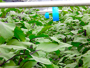 当地域は全国でも有数な長ナスの生産地です。台風などの自然災害にも耐えうる耐候性ハウス(約40ha)を活用した安定生産、安心・安全な品物を提供するため、天敵昆虫・粘着板・防虫ネットを利用した農薬回数削減に努めています。また当部会女性部と連携し、色々と手軽に出来る料理から珍しい料理も開発していますので、ご家庭の献立にご利用ください。